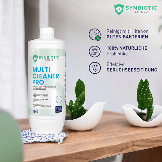 SYNBIOTIC SHIELD - Multicleaner Pro<br/><br/>natürlich reinigen mit guten Bakterien | Probiotischer Allzweckreiniger | Konzentrat | Geruchsneutralisierer | Soforteffekt gegen Uringerüche | Boden- Fenster- Glas- Badreiniger